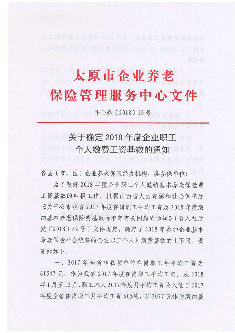 关于确定2018年度企业职工个人缴费工资基数的通知
