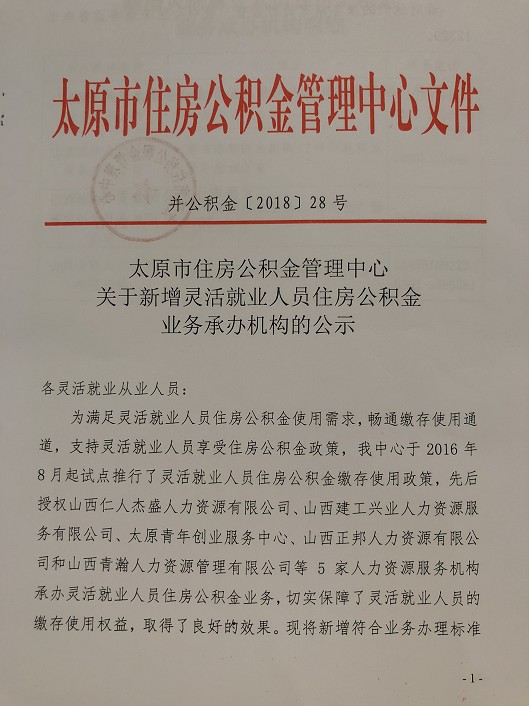 关于新增灵活就业人员住房公积金业务承办机构的公示