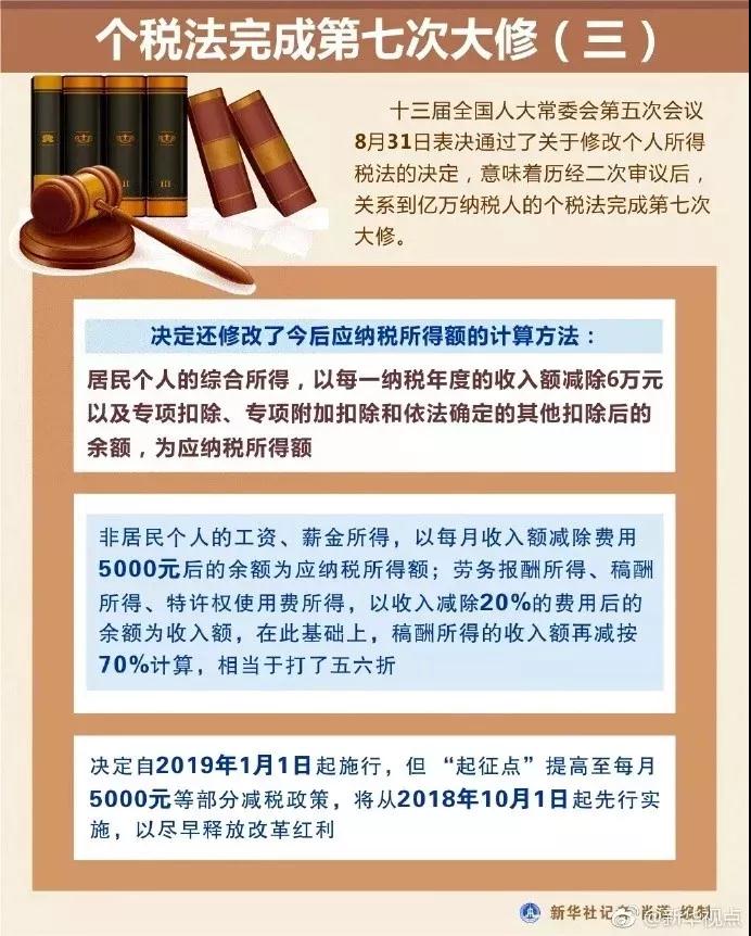 人民日报客户端8月31日消息,31日下午,备受社会关注的关于修改个人所得税法的决定经十三届全国人大常委会第五次会议表决通过。至此,七次大修后的新个税法正式亮相!