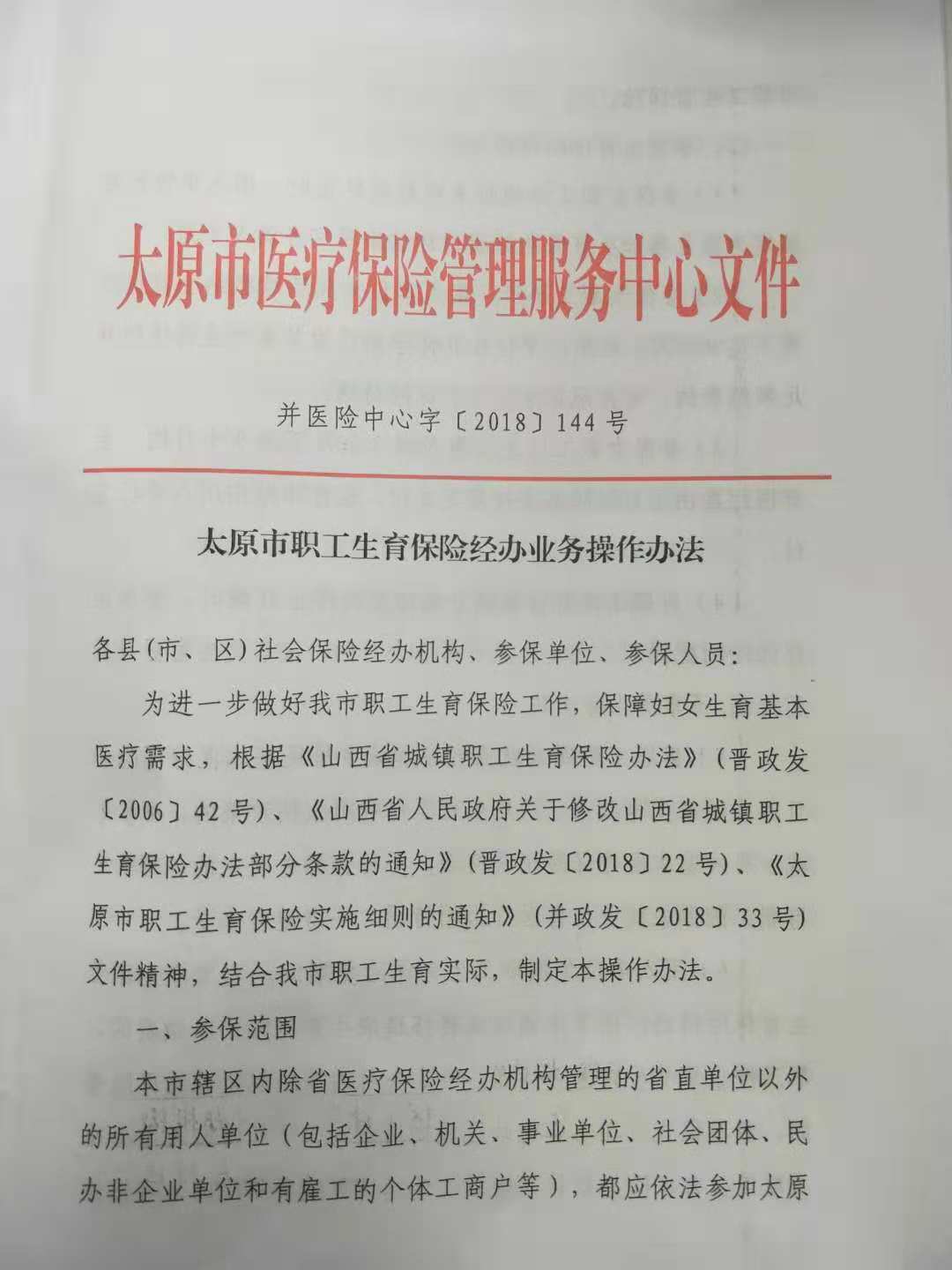 太原市职工生育保险经办业务操作办法