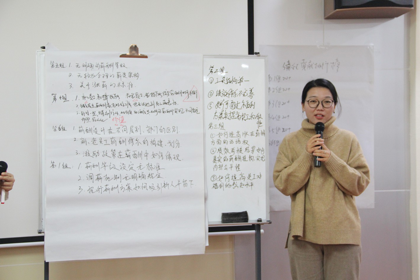 本次课程以分组讨论提出问题的形式切入,大部分企业存在薪酬设计无依据、职位薪资无差异、薪酬结构不合理、福利体系不完善、员工对企业不认同等共性问题,导致人才频频流失,但又无计可施。针对这些邓老师给出薪酬设计八步法、海氏评价法等实用工具;说明薪酬调查分析、员工薪酬满意度调查、岗位分析、岗位评价对企业薪酬体系设计的重要性;提出服务福利和弹******利的内容以及设计方案。整个课程有理论解读、有案例借鉴、有落地建议,并把管理通过手机存放、组长选拔、问题提选、积分奖惩等等理念贯穿课程每一部分,让我们在学习薪酬规划的同时对管理有了更具体的理解。