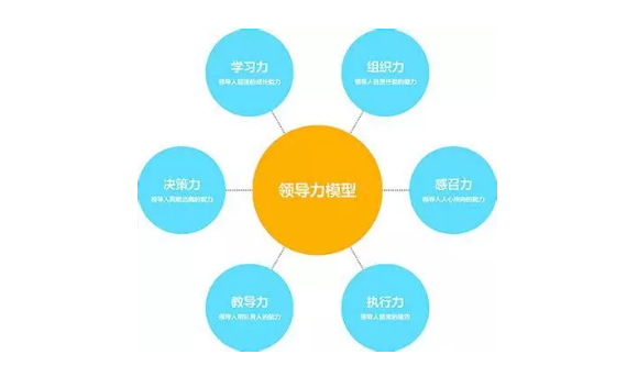 领导者需要的六种核心能力(简称六维能力):先时而变的学习力、远见卓识的决断力、令行禁止的推行力、优化资源的组织力、带队育人的教导力、不令而行的影响力。