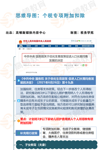 2021年6月,中共中央、国务院印发《关于优化生育政策促进人口长期均衡发展的决定》,提出“研究推动将3岁以下婴幼儿照护费用纳入个人所得税专项附加扣除”。这是党中央、国务院根据我国人口发展变化形势作出的重大决策,是促进人口长期均衡发展、推动高质量发展的重大举措。3岁以下婴幼儿照护个人所得税专项附加扣除政策作为优化生育政策的配套支持措施之一,体现了国家对人民群众生育养育的鼓励和照顾,有利于减轻人民群众抚养子女负担。该项政策实施后,有3岁以下婴幼儿的家庭都将从中受益。