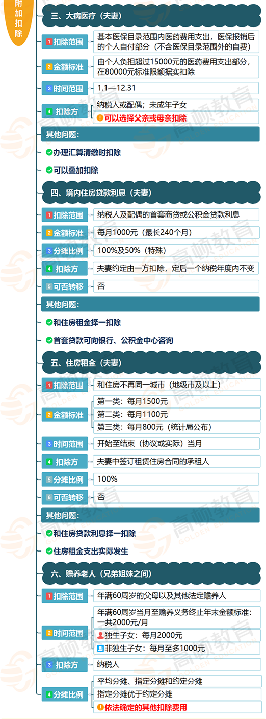 老师将具体政策进行了梳理,来详细看看能享受多少条个税专项扣除吧!文末附上漫画,帮大家更好的了解专项附加扣除!