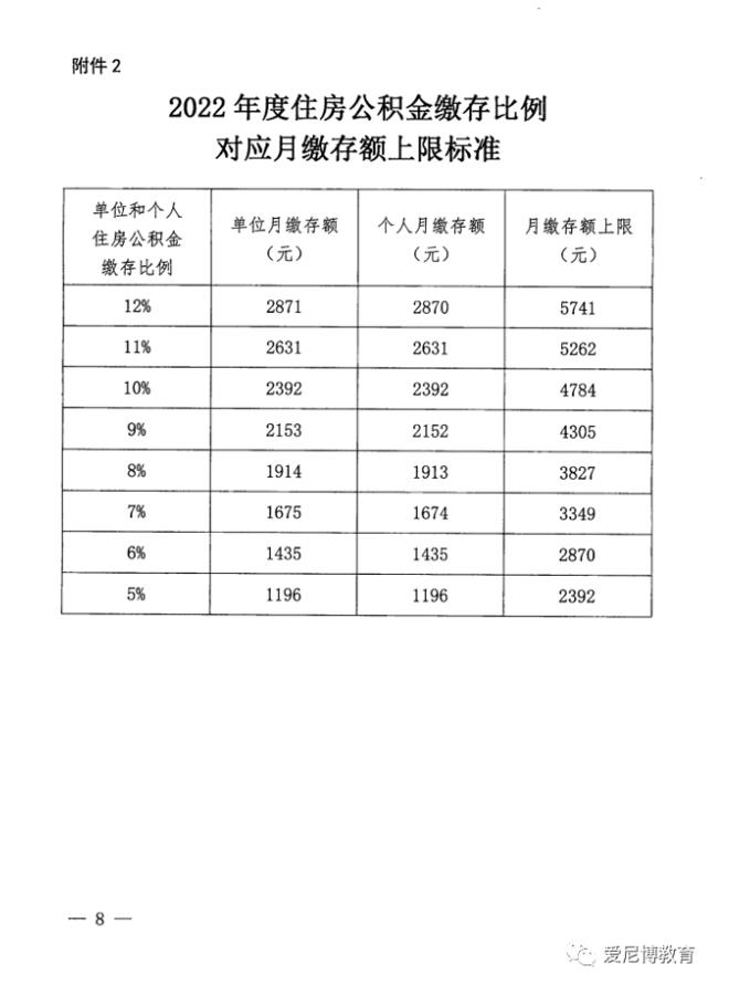 2022年度住房公积金缴存基数和比例调整通知