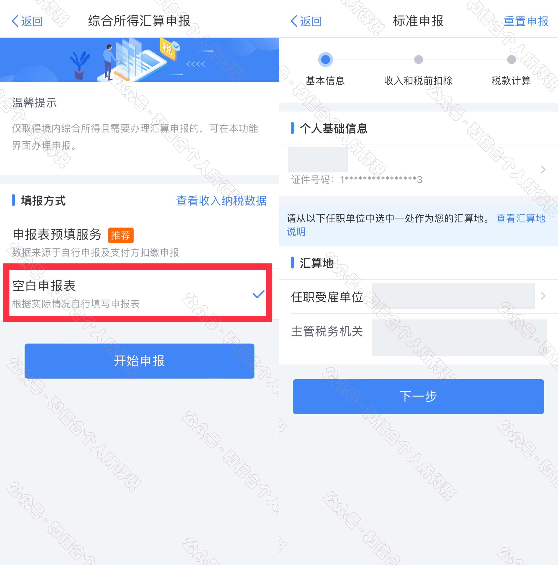 一是从首页中间部位【2022综合所得年度汇算】-【开始申报】进入;