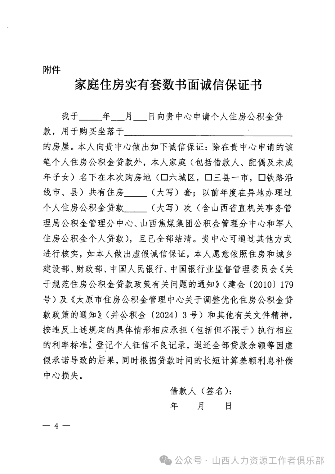 6.在太原市六城区购房的,以六城区房屋套数认定;在三县一市和铁路沿线市(县)购房的,以购房市(县)房屋套数认定。缴存职工申请贷款的,其房产记录由中心工作人员通过信息系统联网核查取得,三县一市、铁路分中心缴存职工购买住房申请住房公积金贷款的,应由其提供其购房地不动产登记部门出具的书面房产查询结果;住房公积金贷款记录通过全国住房公积金监管 服务平台、公积金管理信息系统、异地贷款职工住房公积金缴存使用证明及缴存职工个人征信报告等有关渠道取得。缴存职工办 理贷款时需同时签署《家庭住房实有套数书面诚信保证书》。