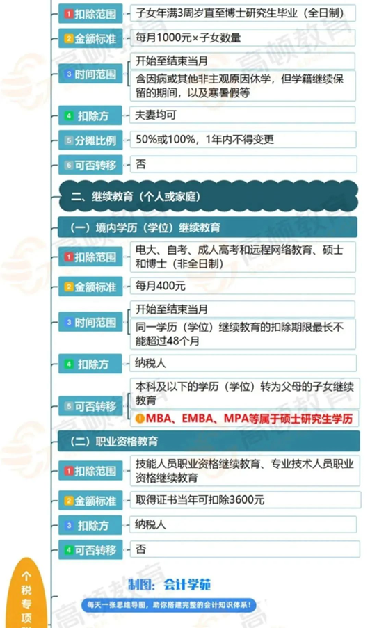 老师将具体政策进行了梳理,来详细看看能享受多少条个税专项扣除吧!文末附上漫画,帮大家更好的了解专项附加扣除!