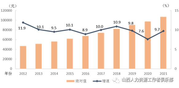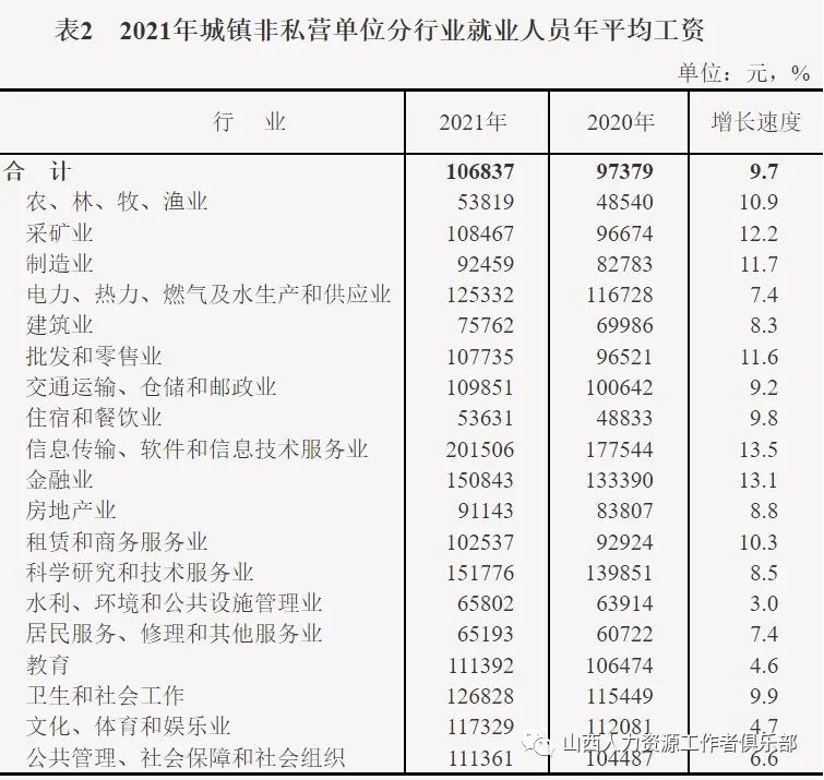 2021年全国城镇非私营单位就业人员年平均工资为106837元,名义增长9.7%