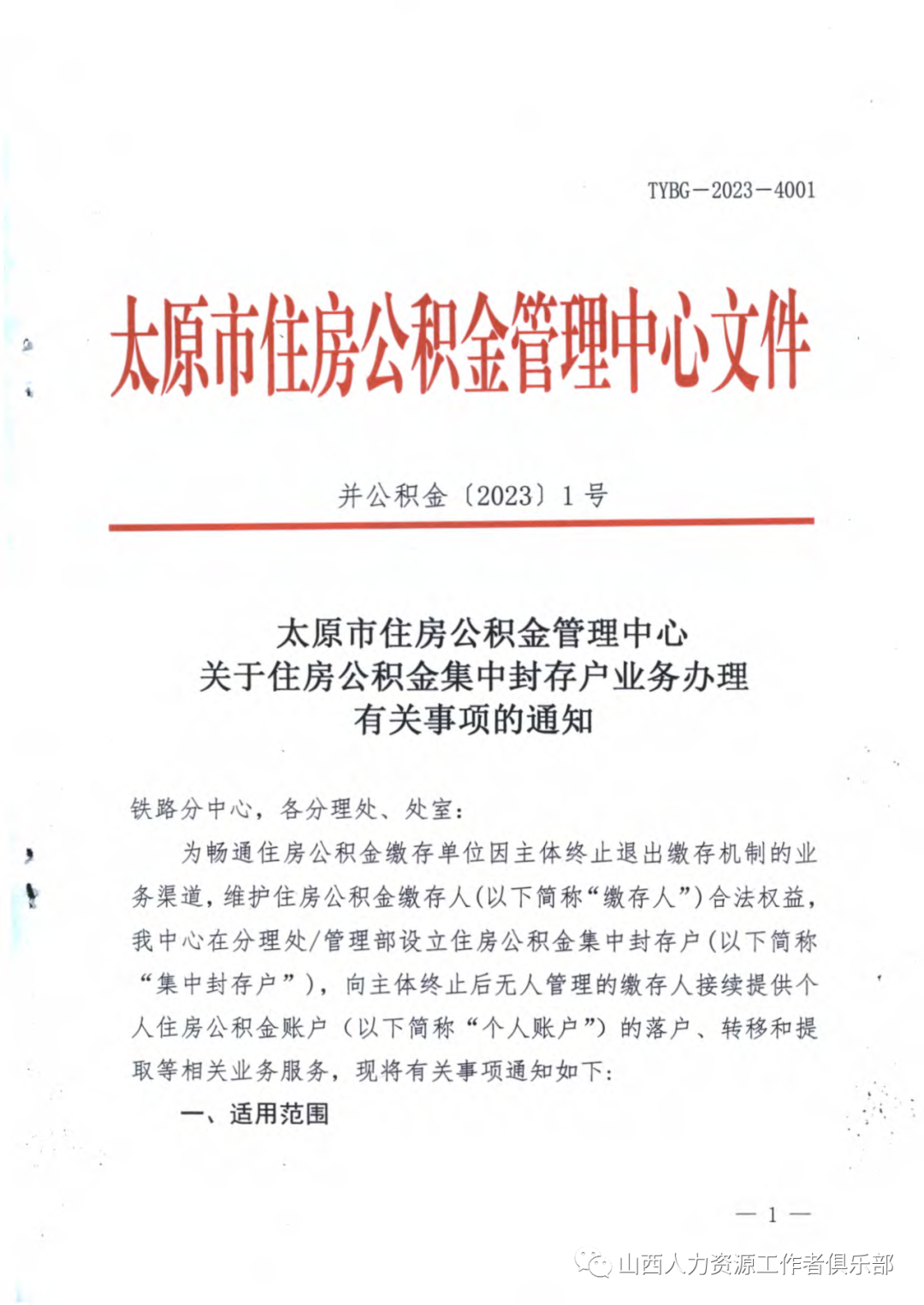 住房公积金因单位解散、破产等原因把个人账户转入集中封存户业务办理通知,自2023年1月16日起执行